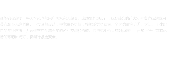 ͨ¹ý³µÔØ´«¸Ðϵͳ£¬£¬£¬£¬£¬£¬£¬½ðÂýõ³Ì¿Í³µ×Ô¼º¾ß±¸ÁË×Ô¶¯µÄÇéÐθÐÖªÄÜÁ¦£¬£¬£¬£¬£¬£¬£¬DAS£¨Ïòǰ·Àײ+õè¾¶Æ«ÒÆ±¨¾¯ÏµÍ³£©¡¢¶¨ËÙѲº½ÊÖÒÕ¡£¡£¡£¡£¡£³ý´ËÖ®Í⣬£¬£¬£¬£¬£¬£¬Ì¥Ñ¹¼à²âϵͳ¡¢ÍäµÀ²¹¹â×°Öá¢ÐÐÀî²ÕÃŵ¯¿ª±¨¾¯×°Öᢱ¬Ì¥Ó¦¼±×°Öá¢×Ô¶¯ÆÆ´°Æ÷¡¢×Ô¶¯´óµÆµÈ¶àÏî¿ÉÑ¡Çå¾²ÉèÖ㬣¬£¬£¬£¬£¬£¬¸ü½«½õ³ÌµÄÐгµÇå¾²ÌáÉýµ½Í¬¼¶ÁìÏÈˮƽ¡£¡£¡£¡£¡£